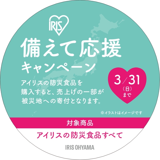 被災地支援と販促活動の一環として、「備えて応援キャンペーン」を実施。2024年3月1日~3月31日の 「アイリスの防災食品」の販売の一部を石川県へ寄附」するキャンペーンを実施しました。防災食の備えと被災地支援をメーカーとして訴求し、100万円の寄附を行いました。