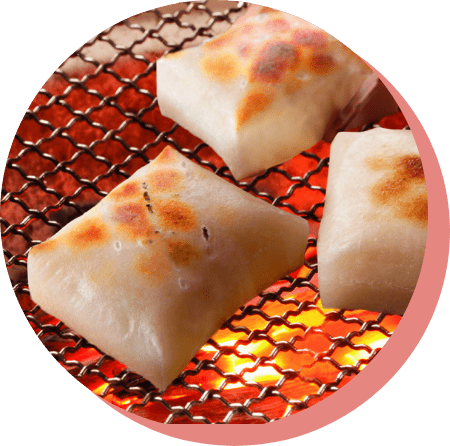 「低温製法」で精米した国産もち米を使用し、おいしいおもちに仕上げました。